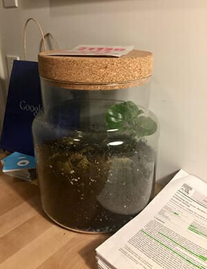 In my office sits a large terrarium I got for my birthday.