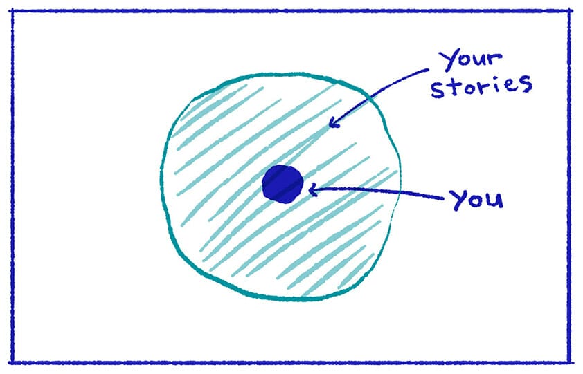 That circle around you, the dot, is the collection of stories people know and tell about you. This picture is what comes to mind when someone thinks about you: they think both about the person you are, as well as the memories and narratives they attach to you.